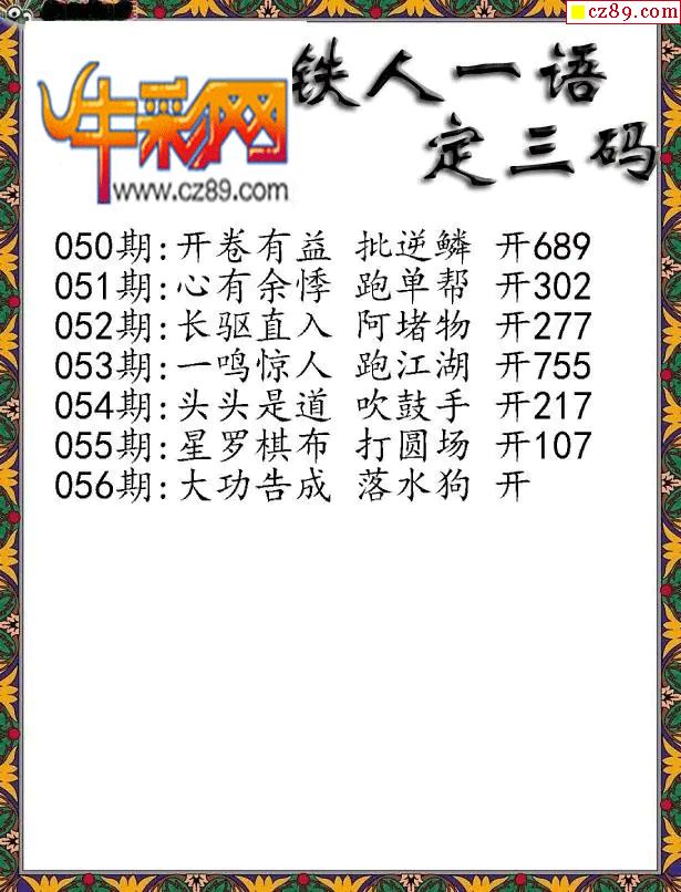 福彩3D2026056期铁人一句定三码字图谜