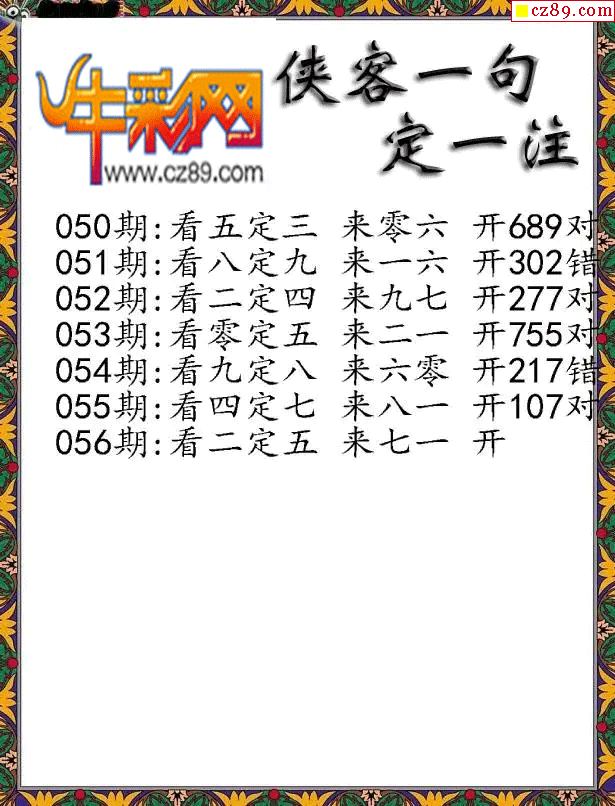 首页 > 福彩3D图谜 > 福彩3D2026056期侠客一句定三码字图谜