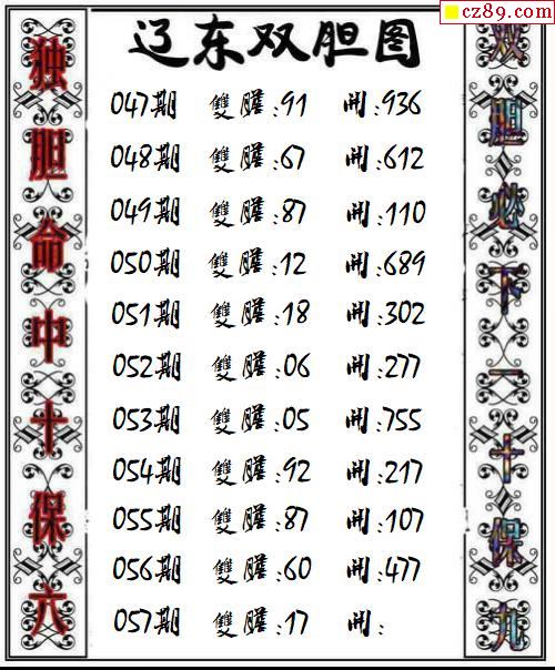 辽东双胆2026057期3d图谜