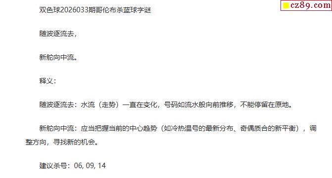 26年福彩双色球033期 哥伦布一句杀蓝球字谜